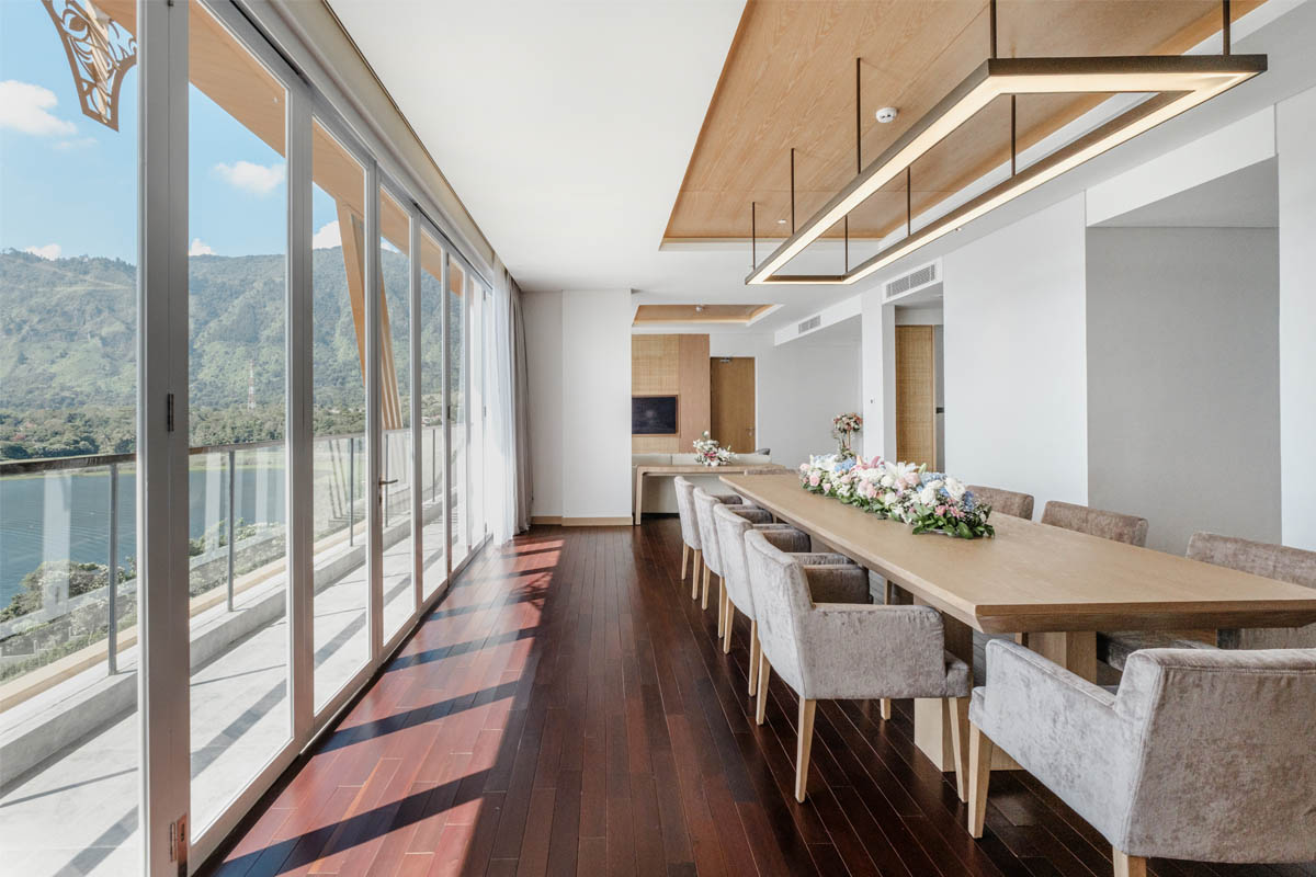 Enjoy refined indulgence with our Presidential Suite, a space that whispers indulgence and awakens your innermost desires. Relish in the generous expanse with a separate bedroom, which features a grand foyer, spacious lounge, elegant dining space and accompanied by panoramic views of the magical Lake Toba.